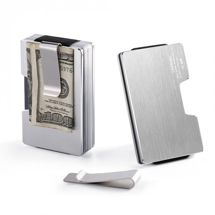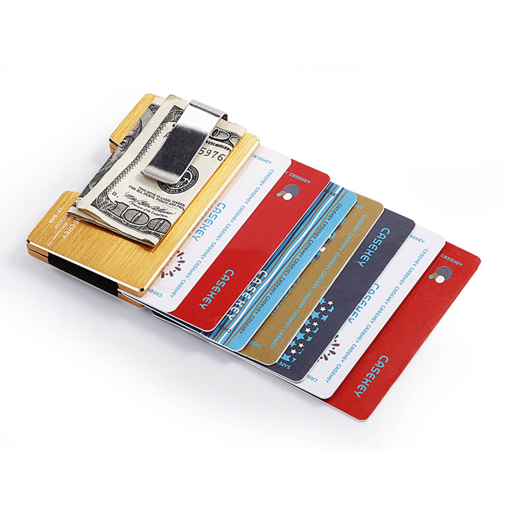 Kreditne kartice v kovinski denarnici Casekey so shranjene v t.i. "kompaktnem žepu", ki ga utrjuje izjemno močna elastika.