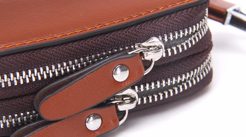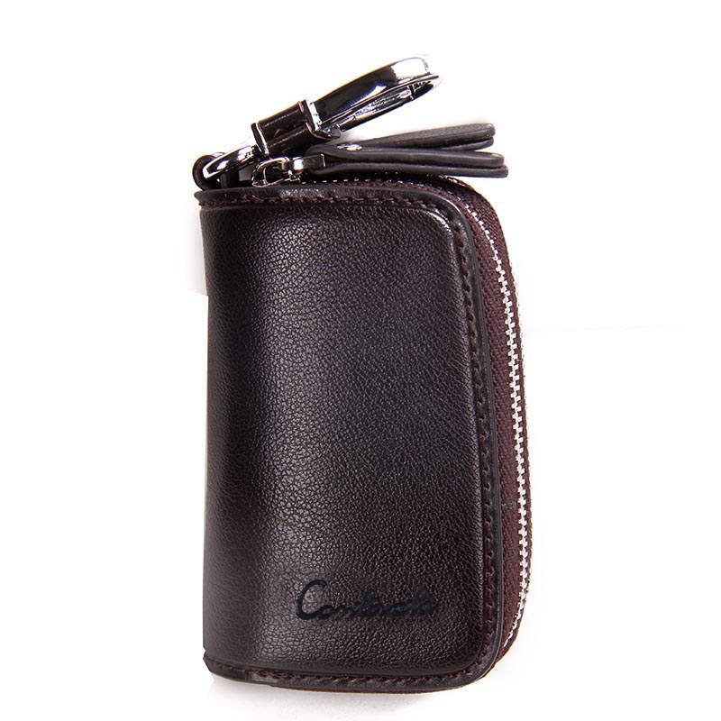 Usnjena denarnica za ključe Contacts ima dve vrhunski zadrgi, s katerima se odpreta dva ločena predela.